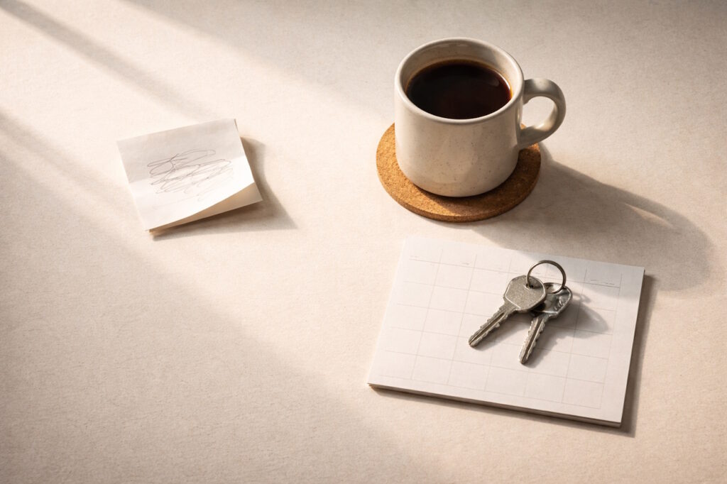 A table works well because it already does one simple thing: it holds things steady. And when your mind doesn’t feel steady, that matters more than it sounds.