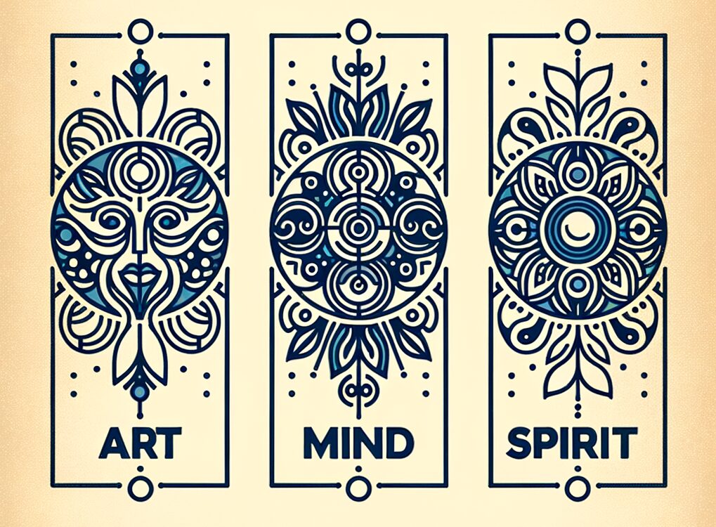 Symbols become powerful not through complexity but through association. You may feel drawn to geometric motifs for example – circles representing wholeness and unity, triangles symbolising direction and focus, or lines and pathways for journeys, choices, or transitions.